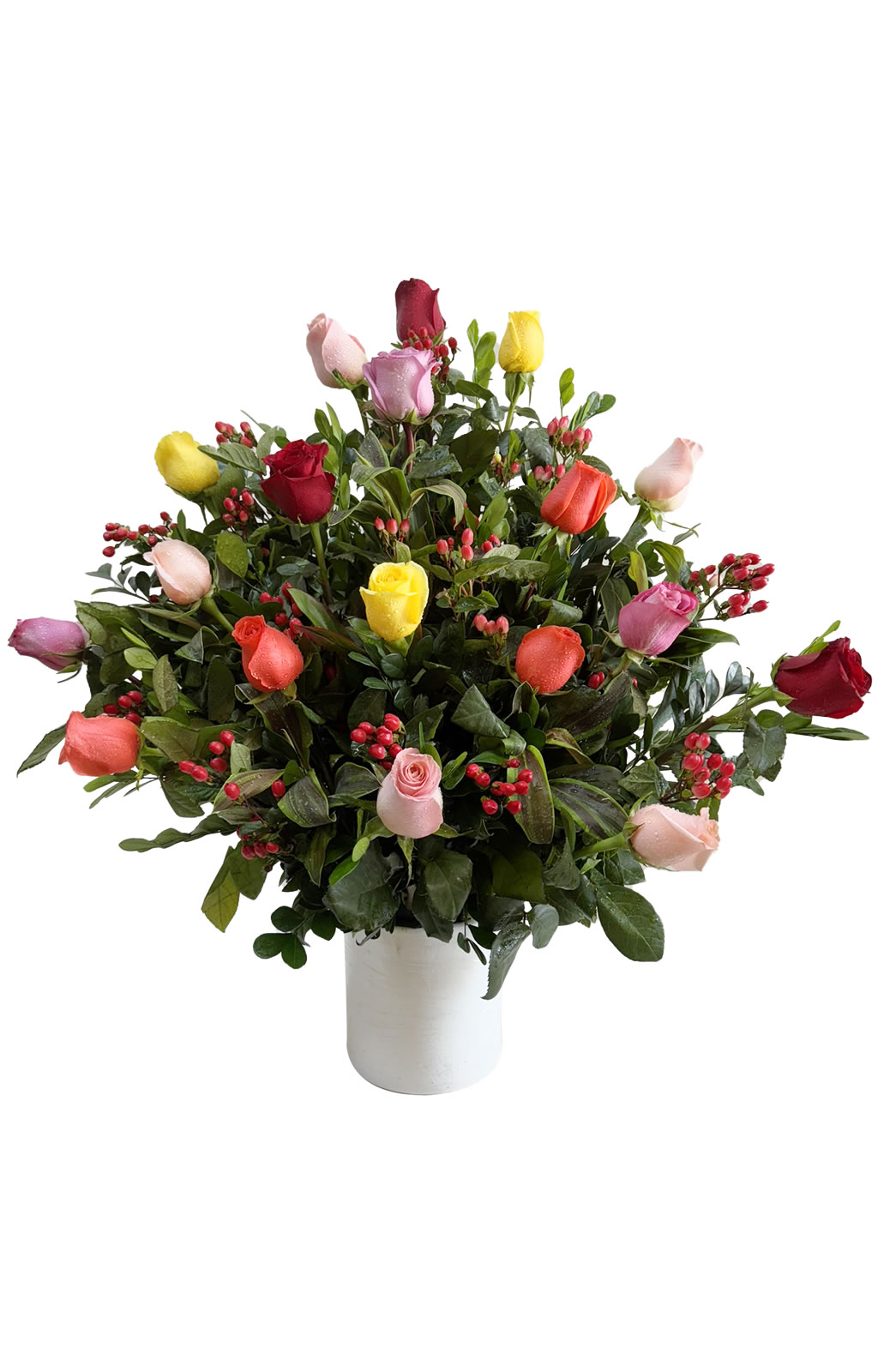 ARREGLO 3 NIVELES DE ROSAS ROJAS