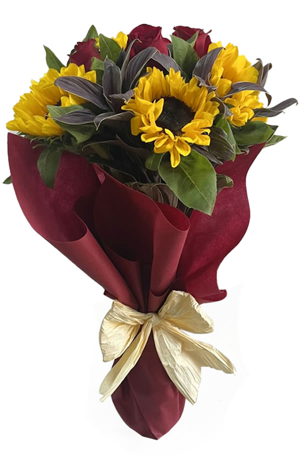 RAMO DE ROSAS Y GIRASOLES EN TELA